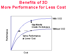 As a result, systems incorporating 3-D DRAM architecture are frequently faster and more cost-effective than 2-D systems. By incorporating SSD architecturally, system integrators will be able to configure a new range of alternatives that deliver superior cost/performance characteristics relative to traditional approaches.